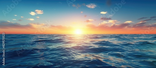 Fototapeta premium Sunset light illuminates the surface of the deep blue sea with a captivating view that offers a peaceful and tranquil setting for a copy space image