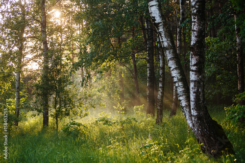 © Uladzislau, Fototapeta premium sunset light in the forest