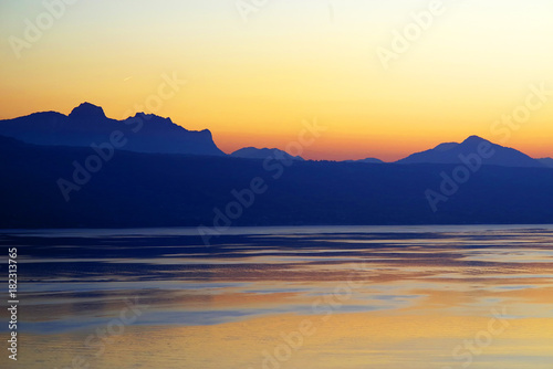 Fototapeta premium Sunset light over Lake Geneva, Canton of Vaud, Switzerland