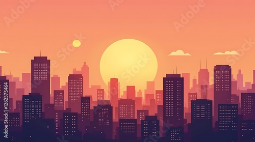 © Eidoran, Fototapeta premium Sunset Metropolis: A Vibrant Cityscape at Dusk
