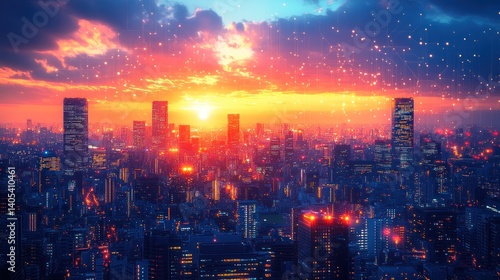 © atul _art, Fototapeta premium Sunset Metropolis: A Vibrant Cityscape at Dusk