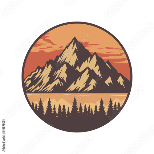 © Kusumaillustration, Obraz premium Sunset mountain logo illustration