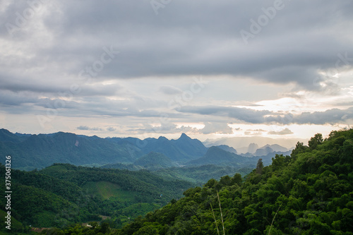 © pamyoi, Obraz premium Sunset Mountain on blue sky