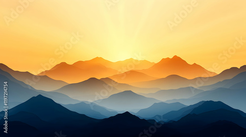 © queen, Fototapeta premium Sunset Mountain Range Illustration