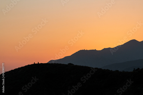 © Nir, Obraz premium sunset mountain view, two silhouettes on a mountain