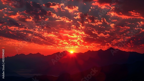 © Yelena, Fototapeta premium sunset mountains a red pic