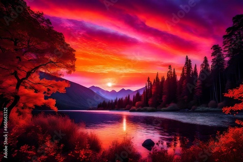 © Hafsa iqbal, Obraz premium Sunset natural view