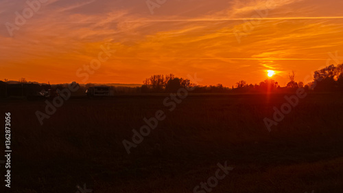 Obraz premium Sunset near Mamming, Isar, Dingolfing-Landau, Bavaria, Germany