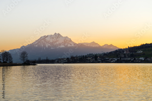 Obraz premium Sunset near Mount Pilatus and lake Lucerne
