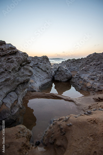 © Jaime, Obraz premium sunset near the sea between the rocks at the beach