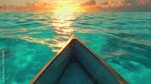 © bulegendut, Obraz premium Sunset ocean view from small boat.