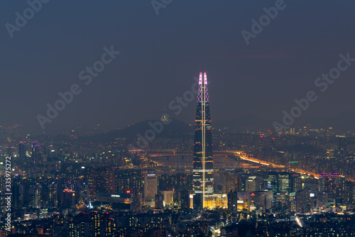 © CJ Nattanai, Fototapeta premium Sunset of Seoul City Skyline,South Korea.