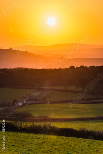 Fototapeta premium Sunset of the Fields, Berry Pomeroy Village in Devon, England, Europe