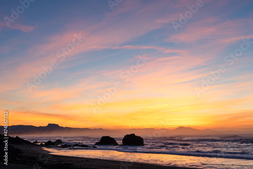© LabbePhotography, Fototapeta premium Sunset on a beach in Biarritz. Winter time.