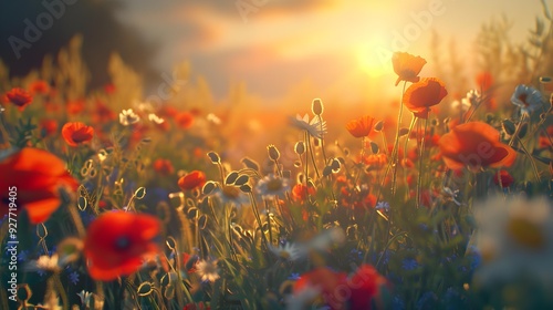 Obraz premium Sunset on a flowering field