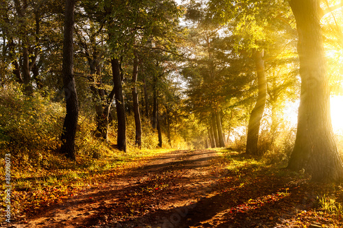 Fototapeta premium Sunset on a forest path in autumn