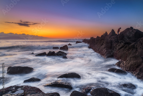 © patxi, Obraz premium Sunset on Azkorri beach, Getxo, Bizkaia