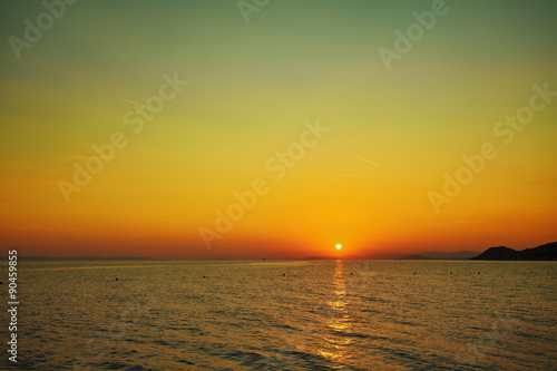 Naklejka premium Sunset on beach / Sunset on the Adriatic. Croatia.