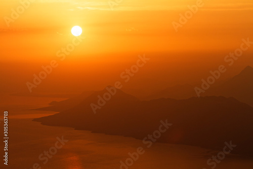 © Goran, Obraz premium Sunset on Biokovo nature park with the view to theAdriaticcoast, Croatia