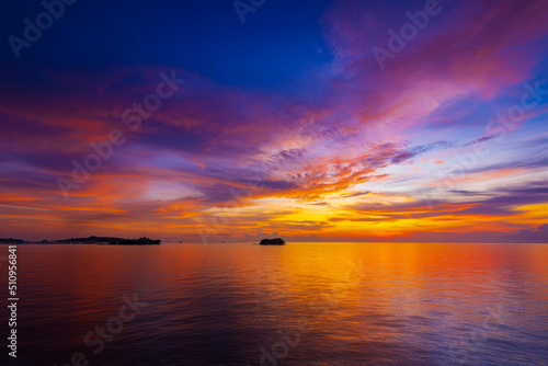 © allouphoto, Obraz premium Sunset on Maldives paradise island holiday resort