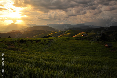 Obraz premium Sunset on Rice Fields Landscape