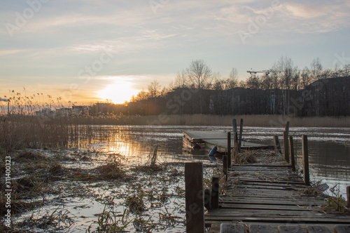 © Alena Petrachkova, Naklejka premium sunset on the autumn lake