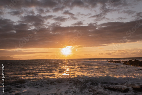 Fototapeta premium sunset on the beach of Azkorri, in Biscay
