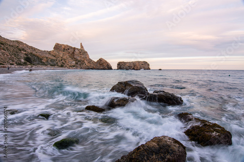 Fototapeta premium Sunset on the beach of La Rijana, Costa Tropical (Granada) Spain