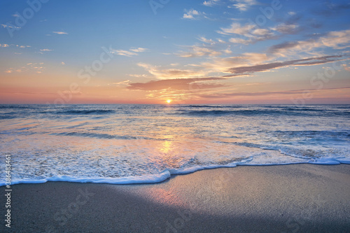 Fototapeta premium Sunset on the beach of Mar de Fora, Finisterre, Galicia, Spain. This beach is...