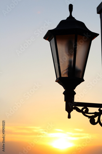 Fototapeta premium sunset on the beach, old lantern