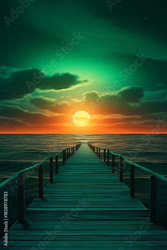 © Adja Atmaja, Fototapeta premium sunset on the beach vertical vector illustration