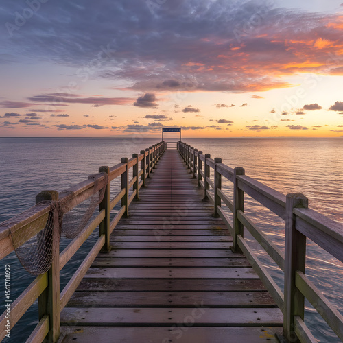 © Fetika, Fototapeta premium Sunset on the bridge at the beach