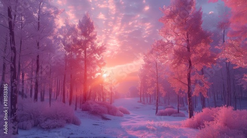 Naklejka premium sunset on the forest with vaporwave tone color, suitable for wallpaper, poster. Generative AI
