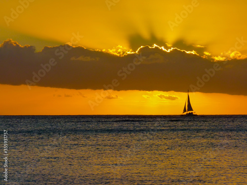 © boivinnicolas, Fototapeta premium Sunset on the Indian Ocean in Grand Baie, Mauritius Island