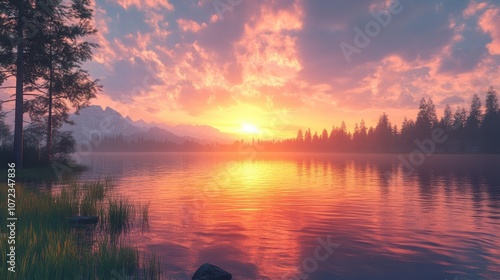 © Іван Ніколов, Obraz premium Sunset on the lake