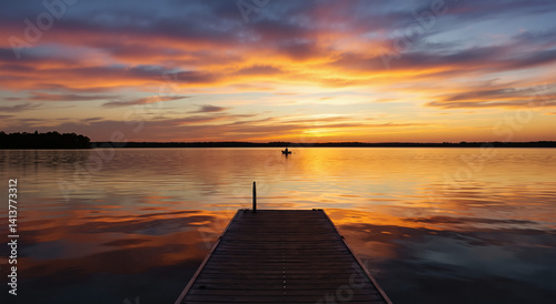 © Ekaterina Kotova, Obraz premium sunset on the lake