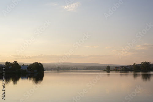 © Анна Майорова, Obraz premium sunset on the pond in the village in summer