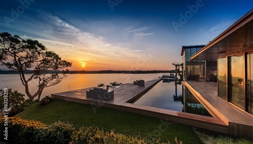 © DELUXSOLUTIONS, Obraz premium sunset on the river