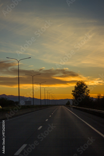 © Elanur, Fototapeta premium Sunset on the road, Georgia.