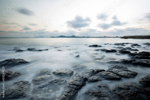 © xy, Fototapeta premium Sunset on the rocky shore.