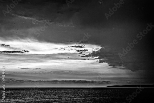 © rninov, Obraz premium Sunset on the sea shore with dramatic sky