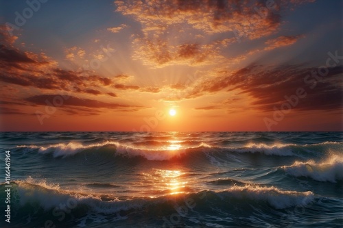 © Fathor, Fototapeta premium sunset on the sea,sunset on the beach,sunset over the sea