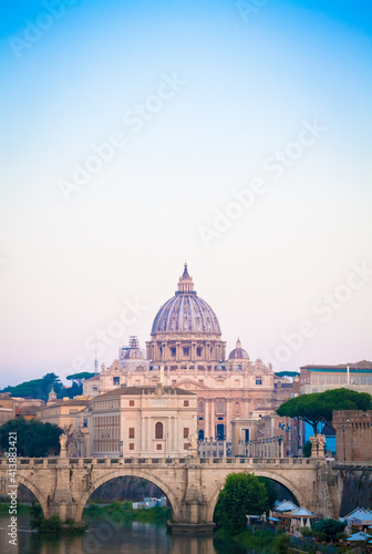 Fototapeta premium Sunset on Tiber river bridge with Vatican City - Rome, Italy