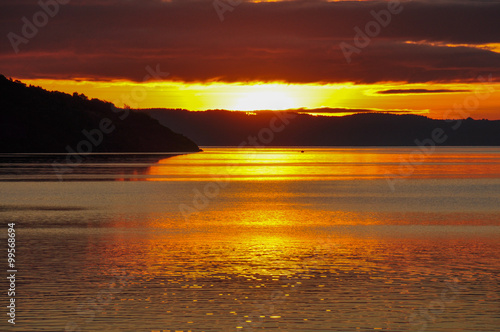 © brizardh, Obraz premium Sunset on Villarrica's lake from Pucon's Beach, Chile