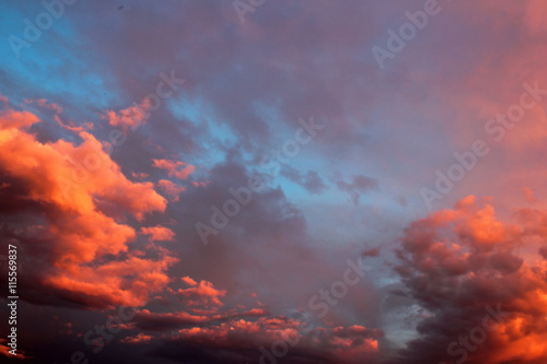 Obraz premium Sunset orange clouds in evening sky