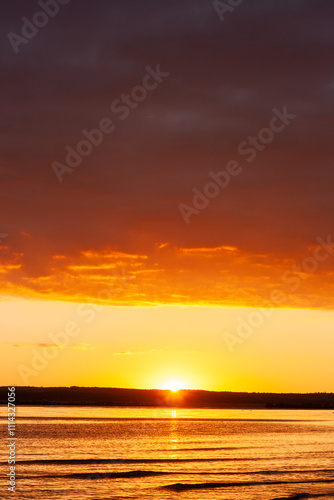 © zenith zones, Fototapeta premium sunset over a body of water with a mountain