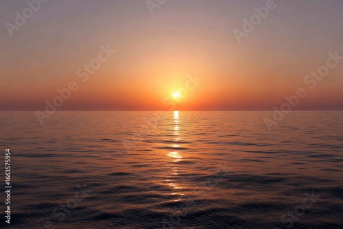 © aco, Naklejka premium Sunset over a calm ocean, soft hues of orange and pink