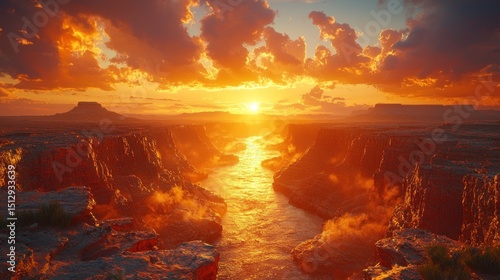 © Rania, Fototapeta premium Sunset over a canyon river. Vivid colors paint a dramatic scene