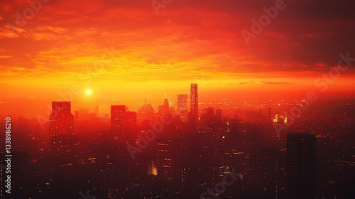 © ADIFERI, Fototapeta premium Sunset over a city skyline, creating a dramatic atmosphere.