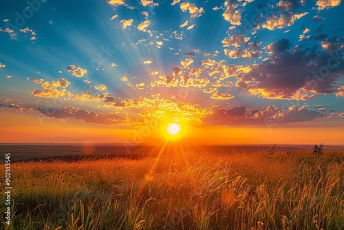 © Mandeep, Fototapeta premium Sunset over a field of tall grass